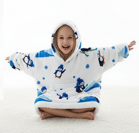 Oversized Wearale Blanket Hoodie Flannel Sherpa Fleece Warm Soft Winter Hoodie Sweatshirt for Kids Adults Snuggle