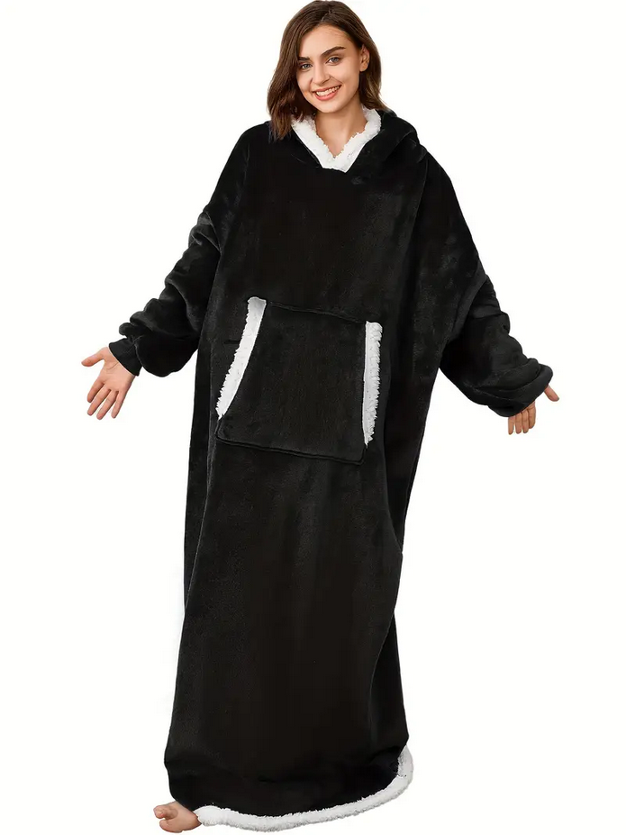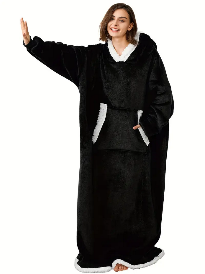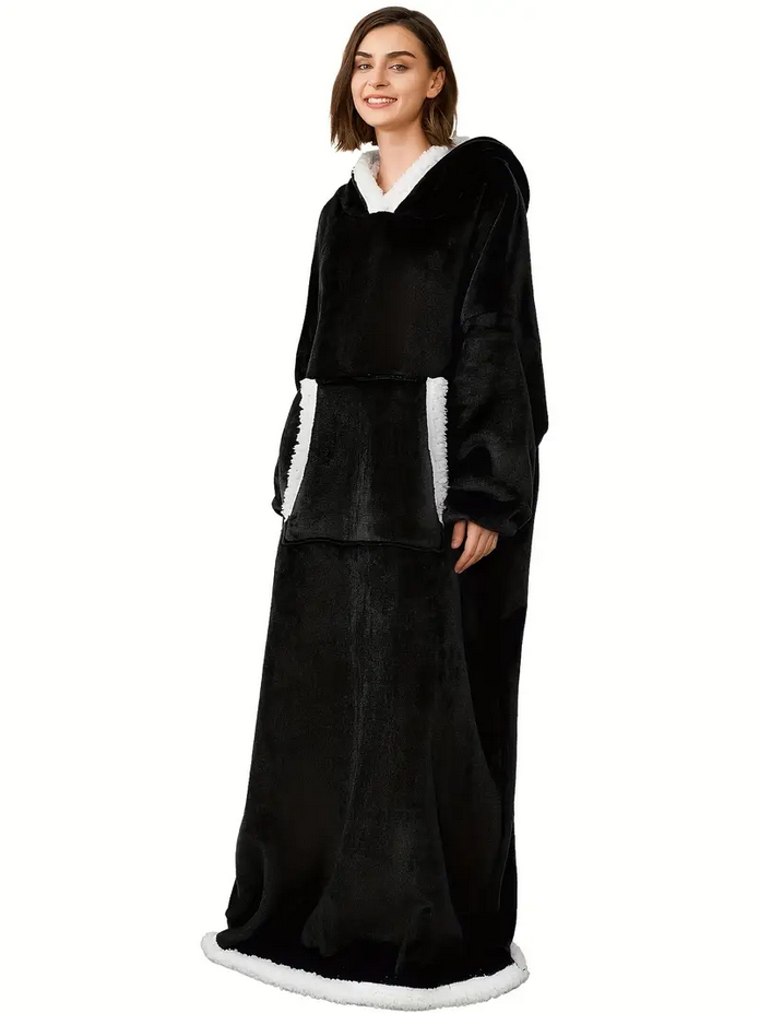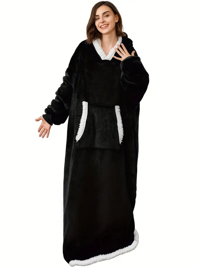 Designed to fit all sizes comfortably, this blanket hoodie offers generous coverage from head to toe, ensuring comprehensive warmth and protection during cold weather. Its roomy design allows for easy movement and layering, making it ideal for relaxing at home or staying cozy outdoors.