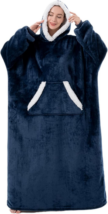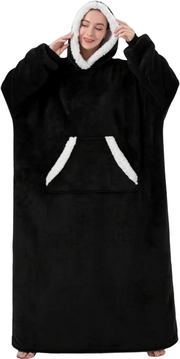 Designed to fit all sizes comfortably, this blanket hoodie offers generous coverage from head to toe, ensuring comprehensive warmth and protection during cold weather. Its roomy design allows for easy movement and layering, making it ideal for relaxing at home or staying cozy outdoors.
