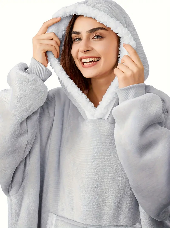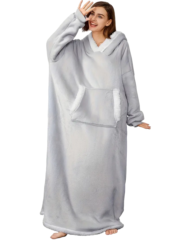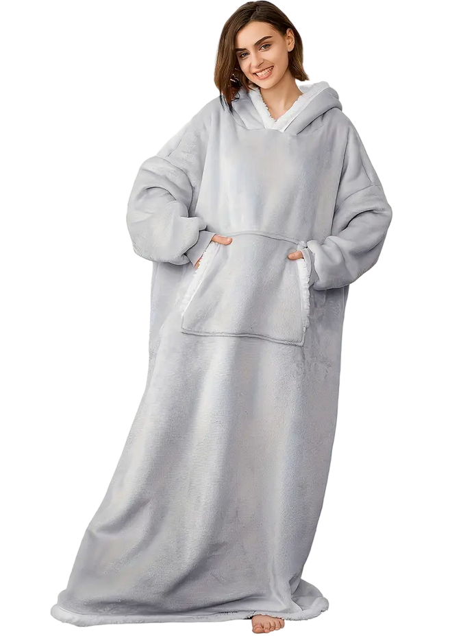 This blanket hoodie is made from ultra-soft fleece and features a plush Sherpa lining that delivers superior warmth and comfort. Its high-quality materials provide excellent insulation, making it perfect for chilly days and evenings.